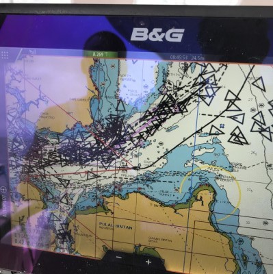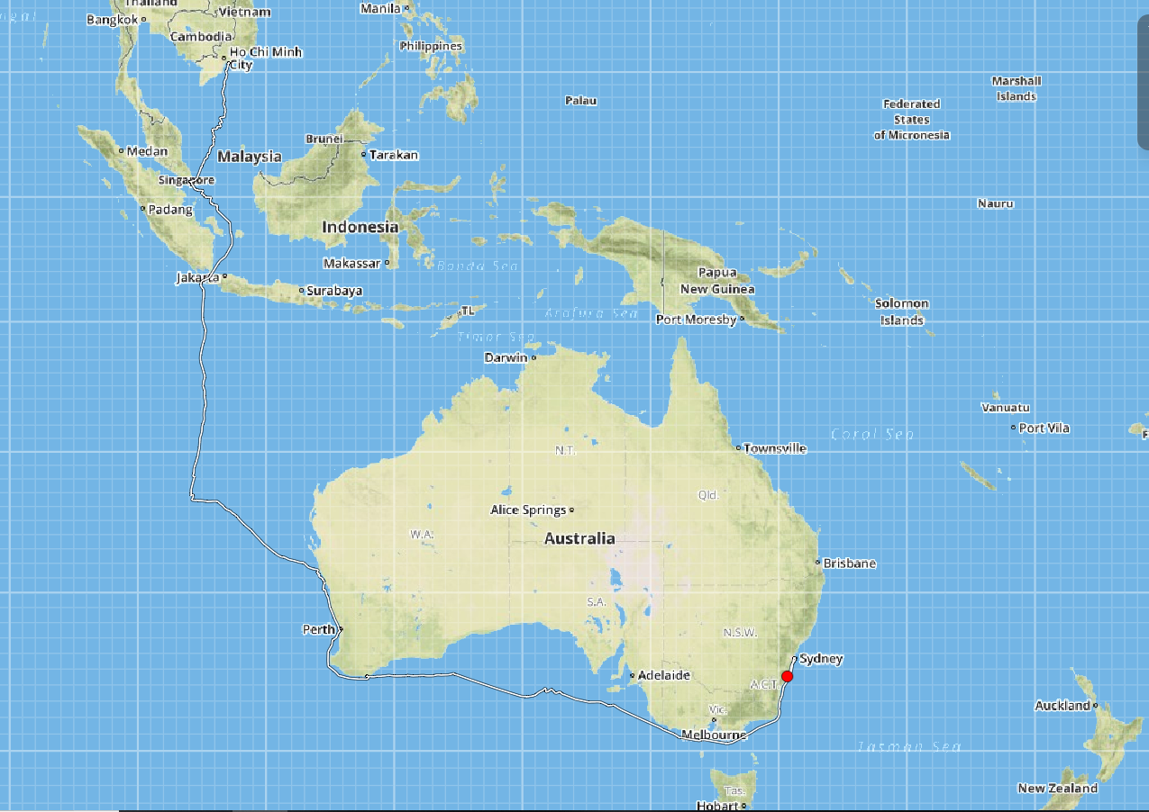 Track of Pleiades maiden voyage after launching at the Seawind factory in Vietnam via Singapore, Perth and the Southern Ocean to Sydney, Sept & Oct 2018 including the 2019 voyage to the Pacific via New Zealand.